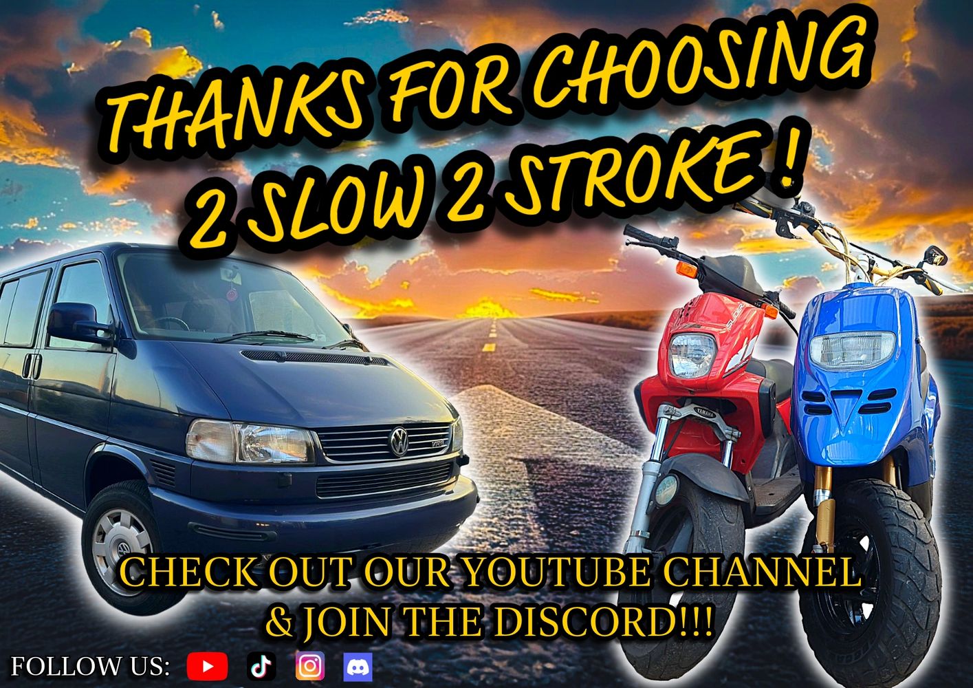 Copyright © 2025 2 Slow 2 Stroke – 2-Stroke Scooter Apparel, Tools & Parts - All Rights Reserved.